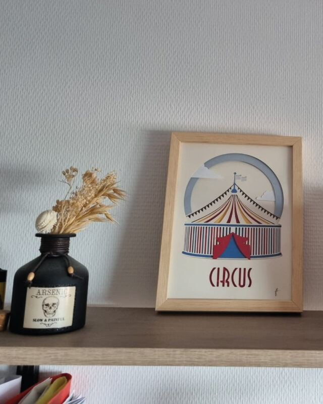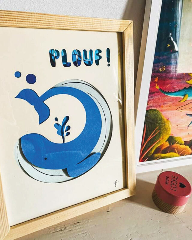 J’imagine d’abord des illustrations numériques en 2D, que j’importe ensuite dans un logiciel de découpe pour assembler les différentes feuilles et éléments, superposés. Pour offrir une œuvre unique, signée, à poser ou à accrocher, sous cadre vitrine.